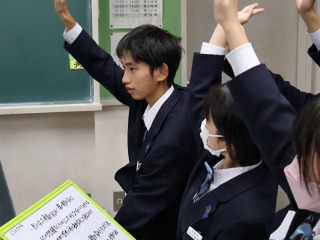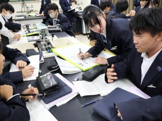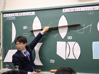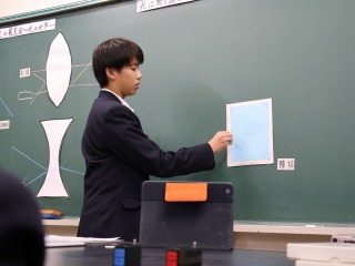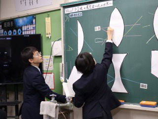 理科授業研究会 2025年11月7日 15時21分 本日、理科部の授業研究会が行われました。 1の2の生徒が、光の屈折の仕組みを実験結果から仲間と共に考察しました。 生徒たちは実験結果を根拠にホワイトボードなどを活用して説明することができました。