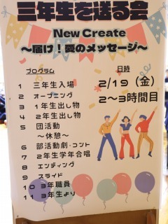 2026年2月19日 12時13分本日は3年生を送る会でした。