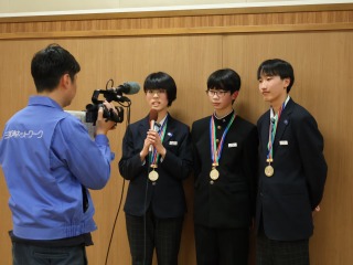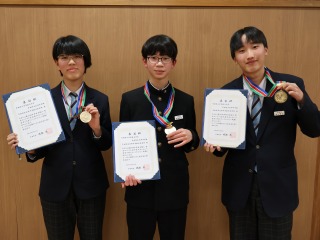 打楽器三重奏で金賞を受賞した3名の生徒が、団体の部で文化賞をいただきました。