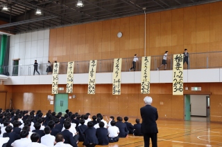 新入生歓迎会 2026年4月24日 16時30分 6時間目に新入生歓迎会を行いました。今年度のスローガン紹介や、団名や団の組み合わせ発表、新入生をまじえたレクを全校で実施し、1年生が北中生の仲間入りをしました。